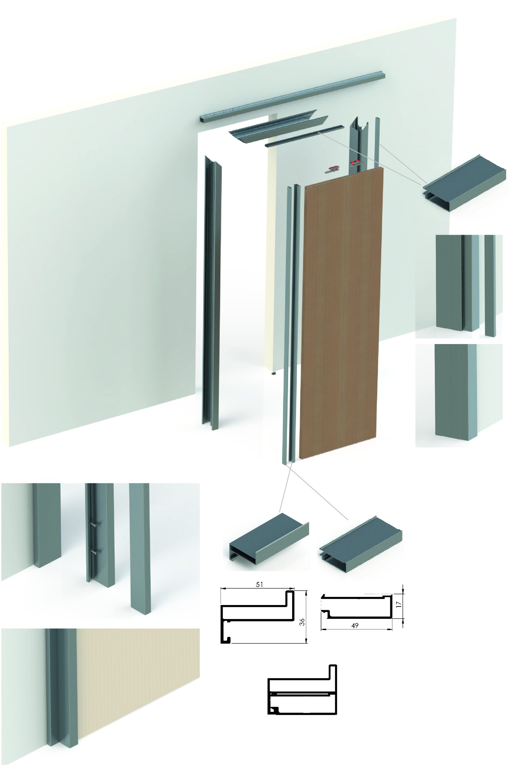 Home / Productos / MARCOS DE ALUMINIO EXTENSIBLES / PUERTA CORREDERA SOBRE PARED_MARCOS DE ALUMINIO