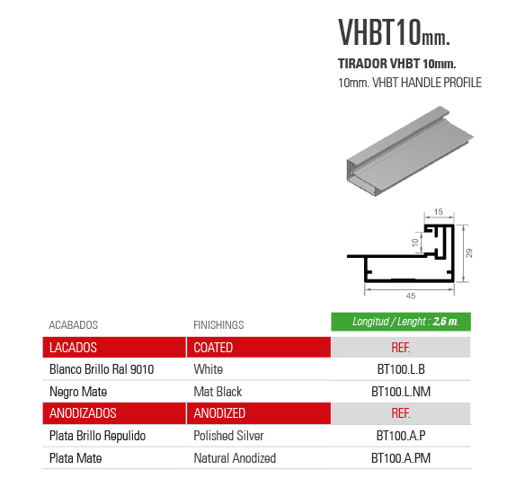 Home / Productos / SISTEMAS DE PUERTAS CORREDERAS PARA ARMARIOS / SERIE 70 / TIRADOR VHBT 10mm.