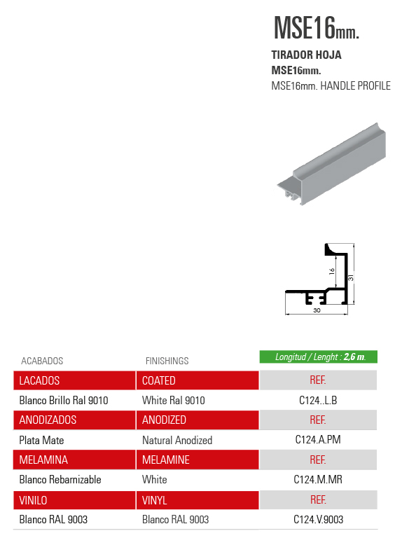 Home / Productos / SISTEMAS DE PUERTAS CORREDERAS PARA ARMARIOS / SERIE 80 / TIRADOR HOJA MSE16mm.