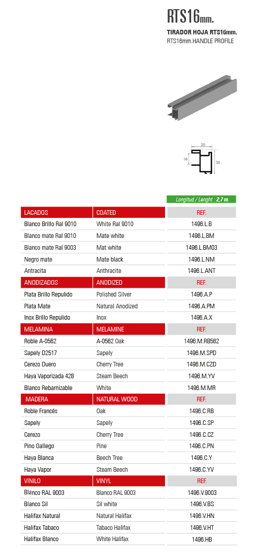 Home / Productos / SISTEMAS DE PUERTAS CORREDERAS PARA ARMARIOS / SERIE 80 / TIRADOR HOJA RTS16mm.